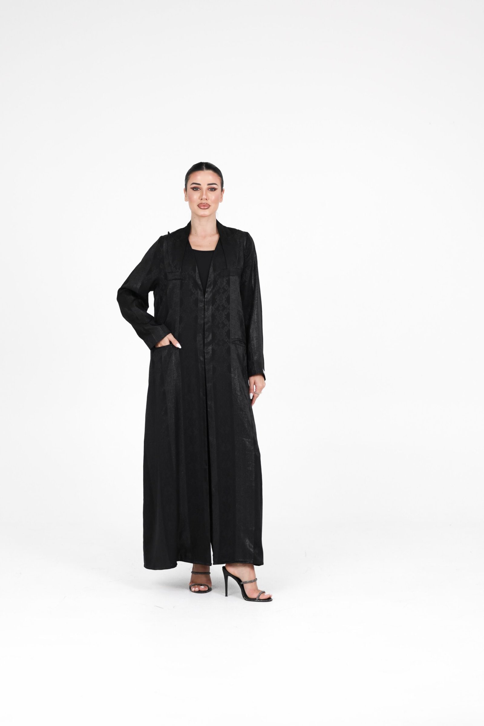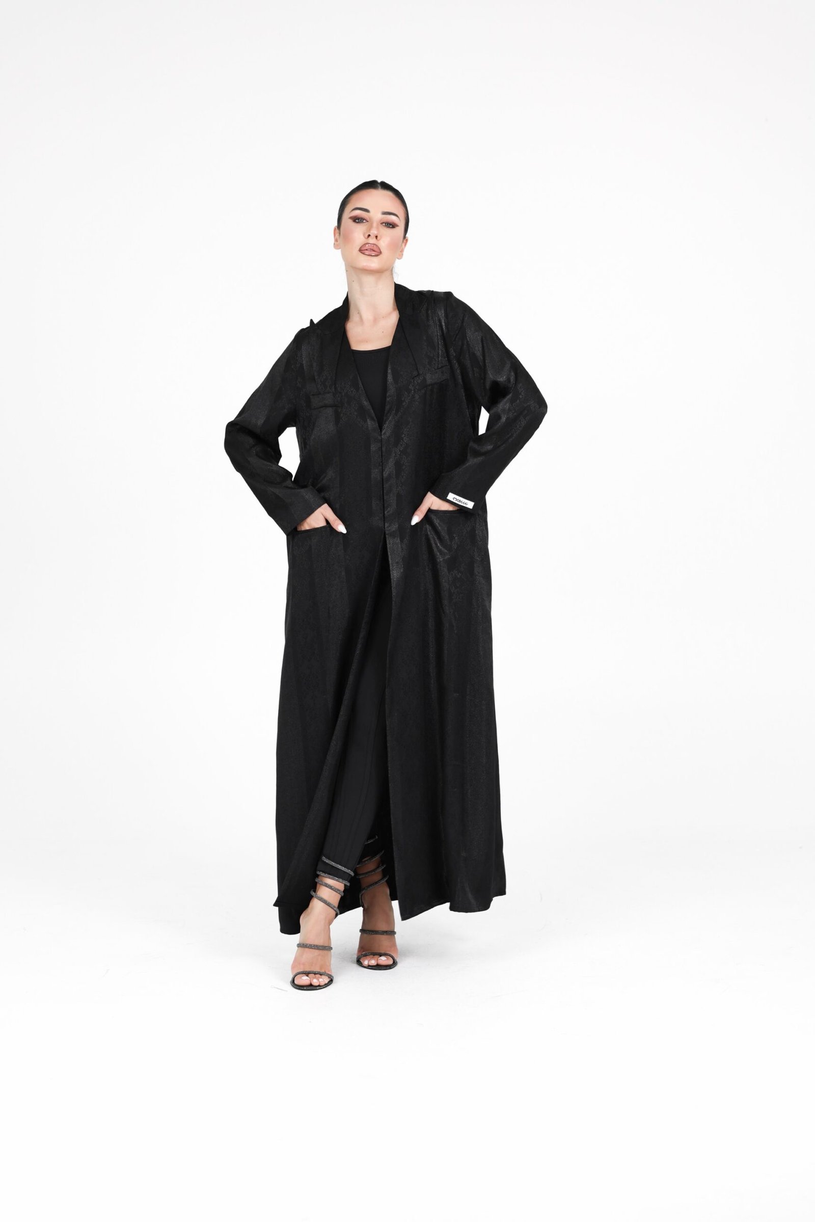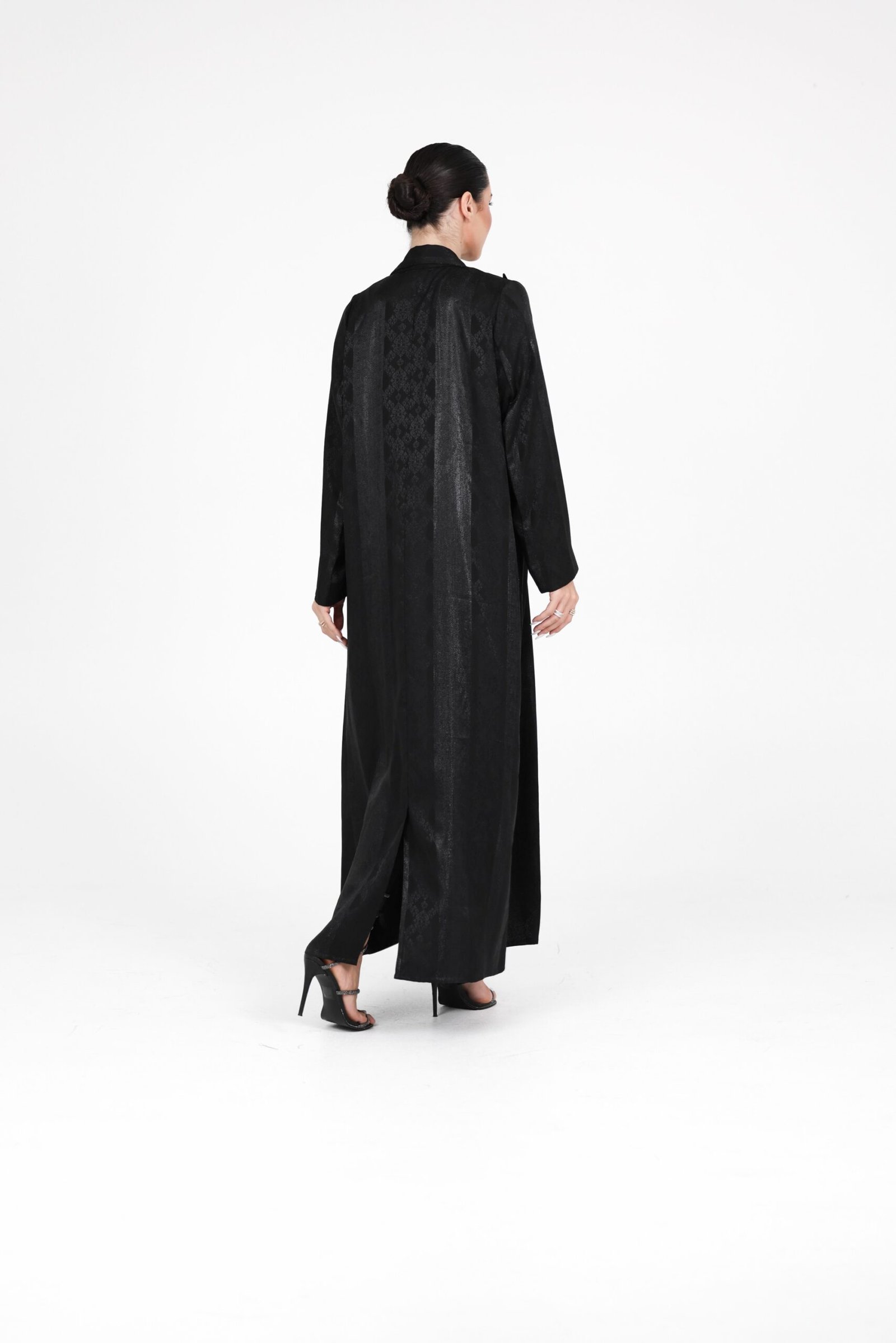 A refined limited-edition design crafted from a subtly textured fabric with a soft sheen, offering an elegant look with a modern edge. Designed in a lightweight coat-style silhouette, this piece combines effortless movement with a polished finish.