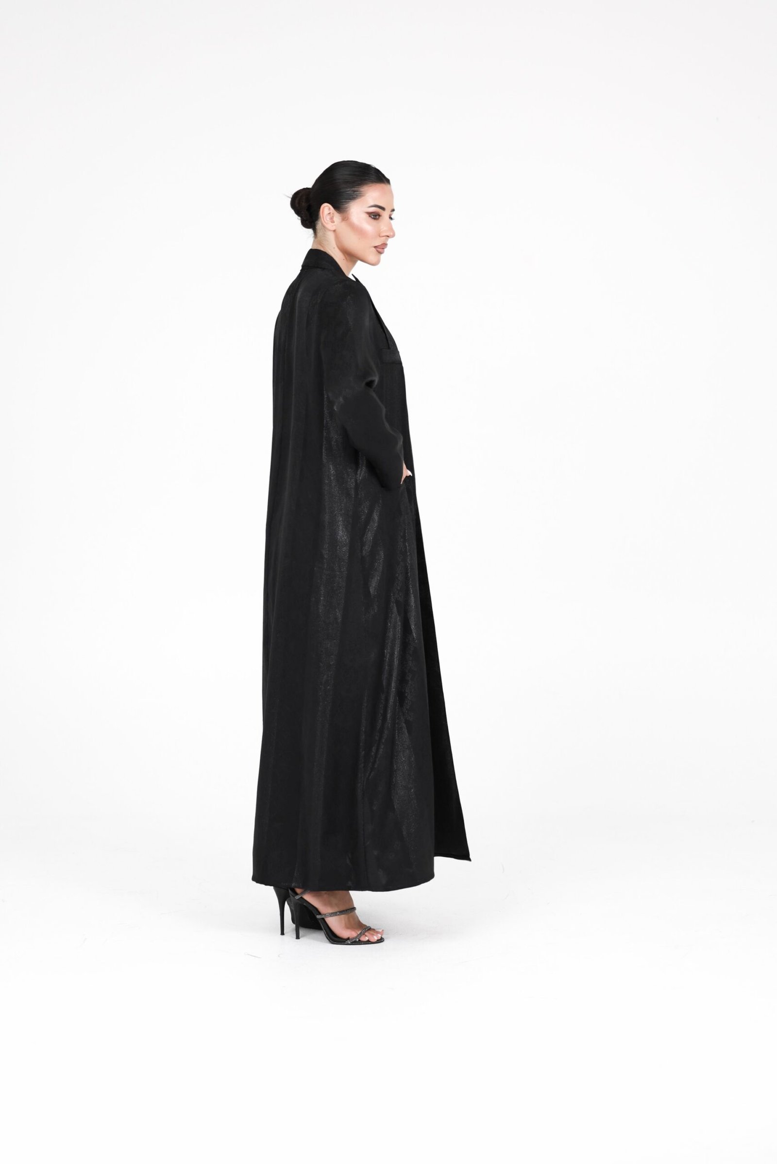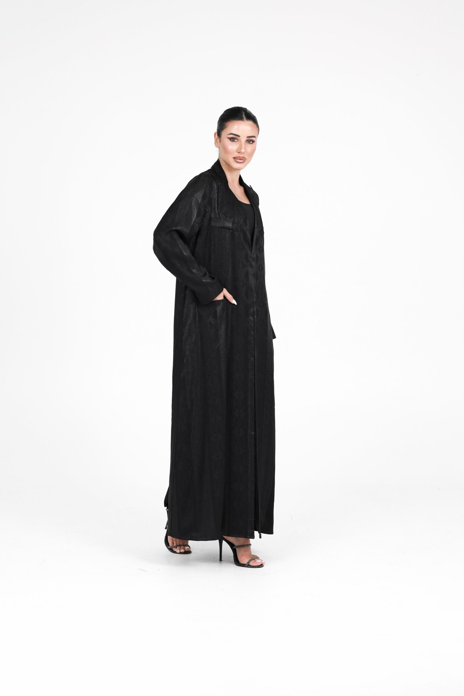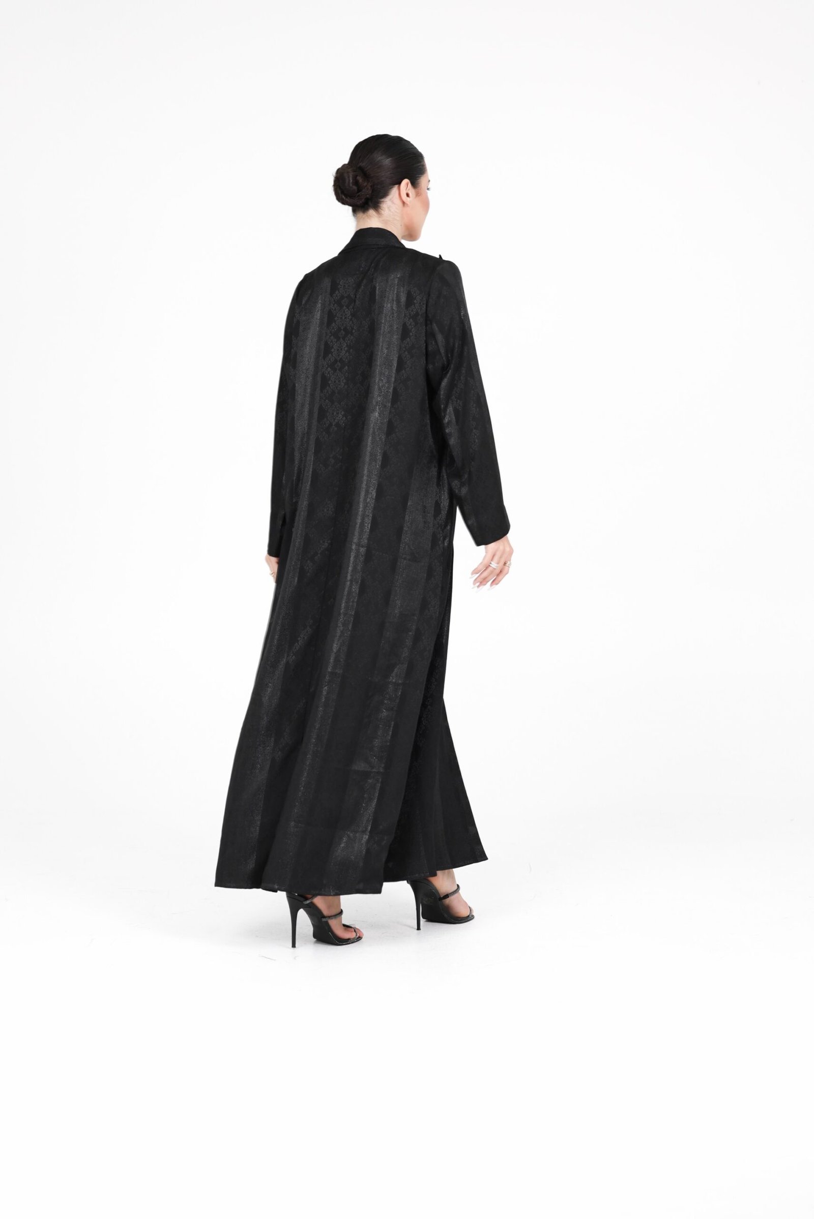 A refined limited-edition design crafted from a subtly textured fabric with a soft sheen, offering an elegant look with a modern edge. Designed in a lightweight coat-style silhouette, this piece combines effortless movement with a polished finish.
